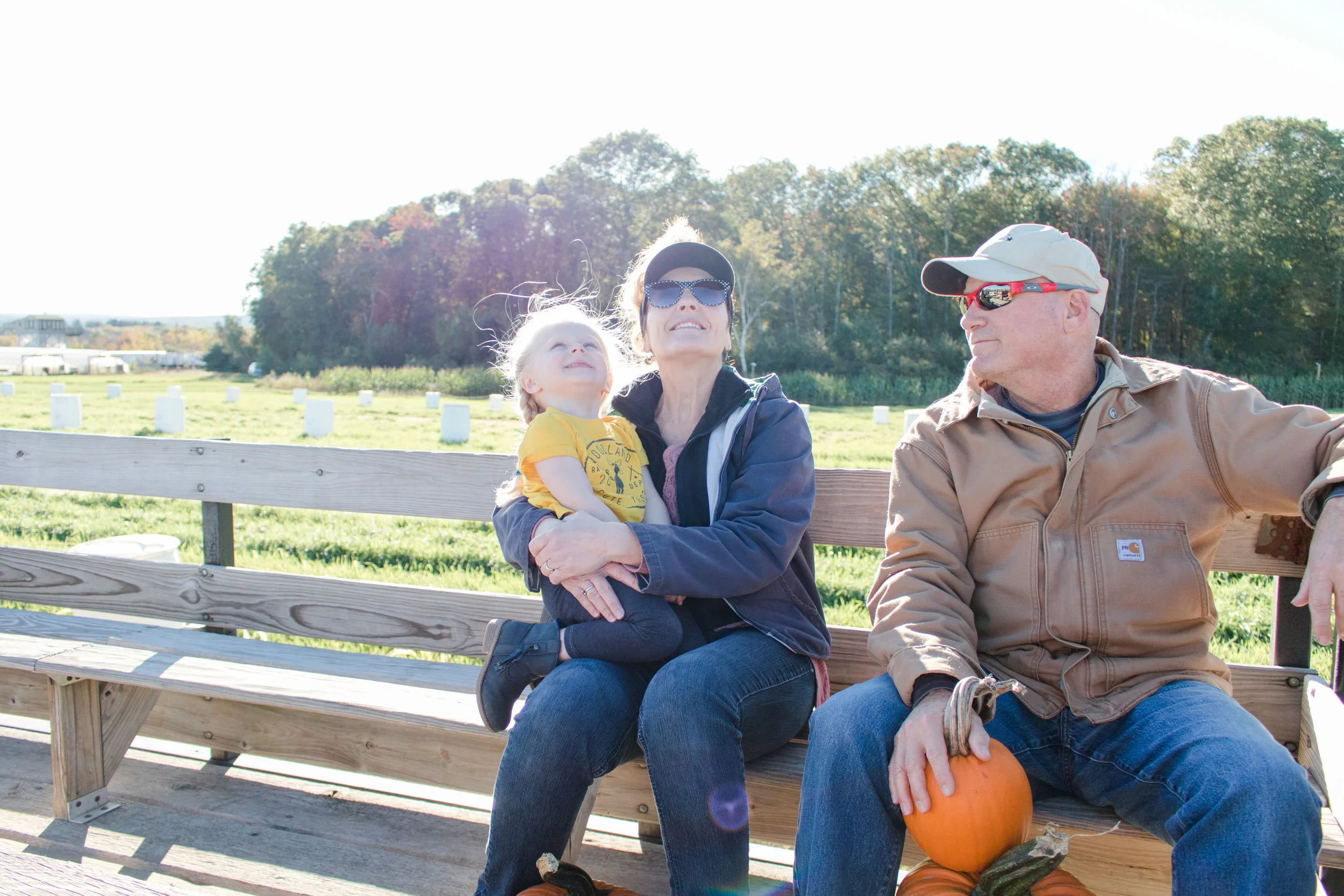 Last year before Halloween George and I came across this incredible farm for pumpkin patching, corn mazein’ and, most importantly, apple cider donuts! We invited my parents along for the adventure. Our visit was on a weekday which meant the kids attractions, to Emmy’s dismay, were not open. That didn’t stop us from having fun! We took the hay ride to the back pumpkin patch. Emmy picked out a real good one. While we waited for the hay ride to come back for us we peeked around in the corn maze. When we got back to the main farm area we lunched on sandwiches from the store. We all left happy, with full belly’s and with quite a few pumpkins!