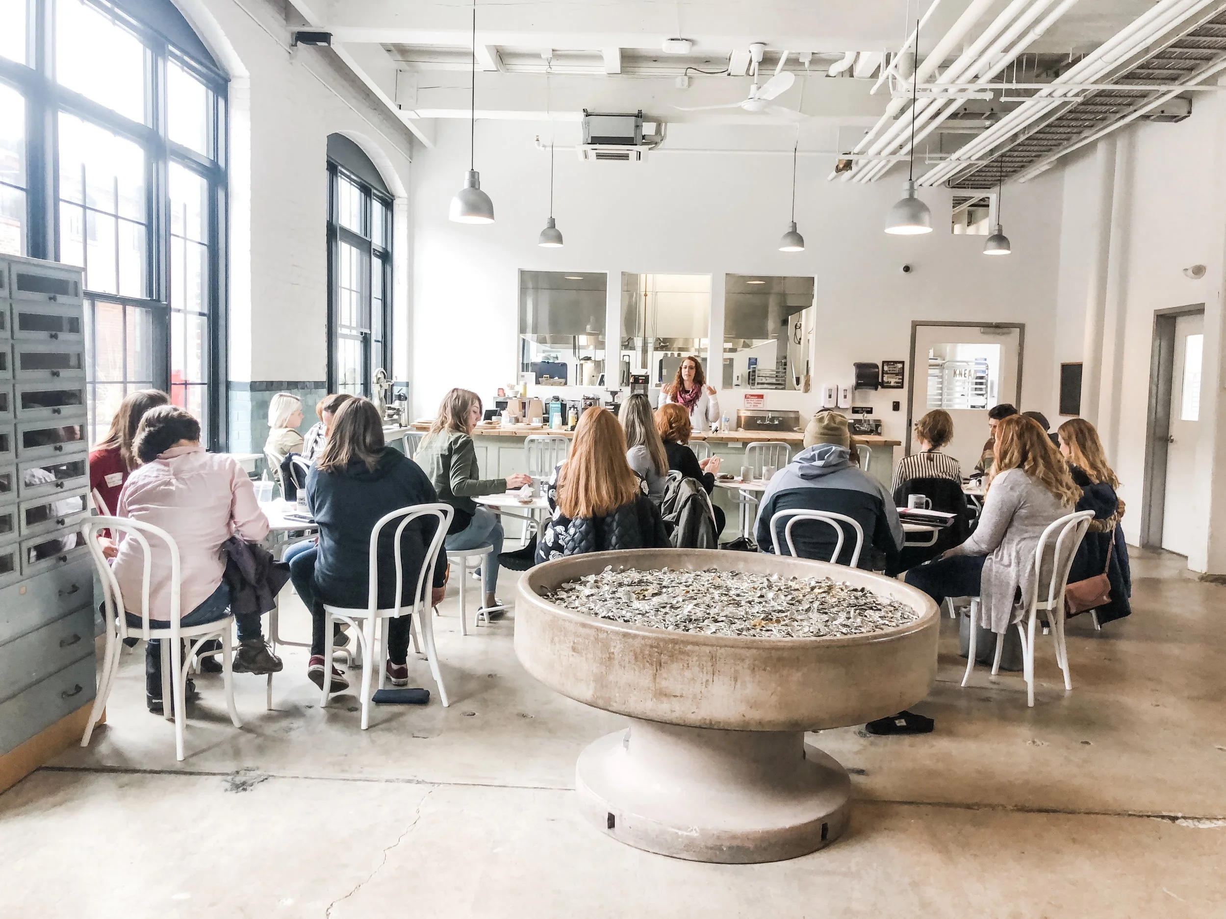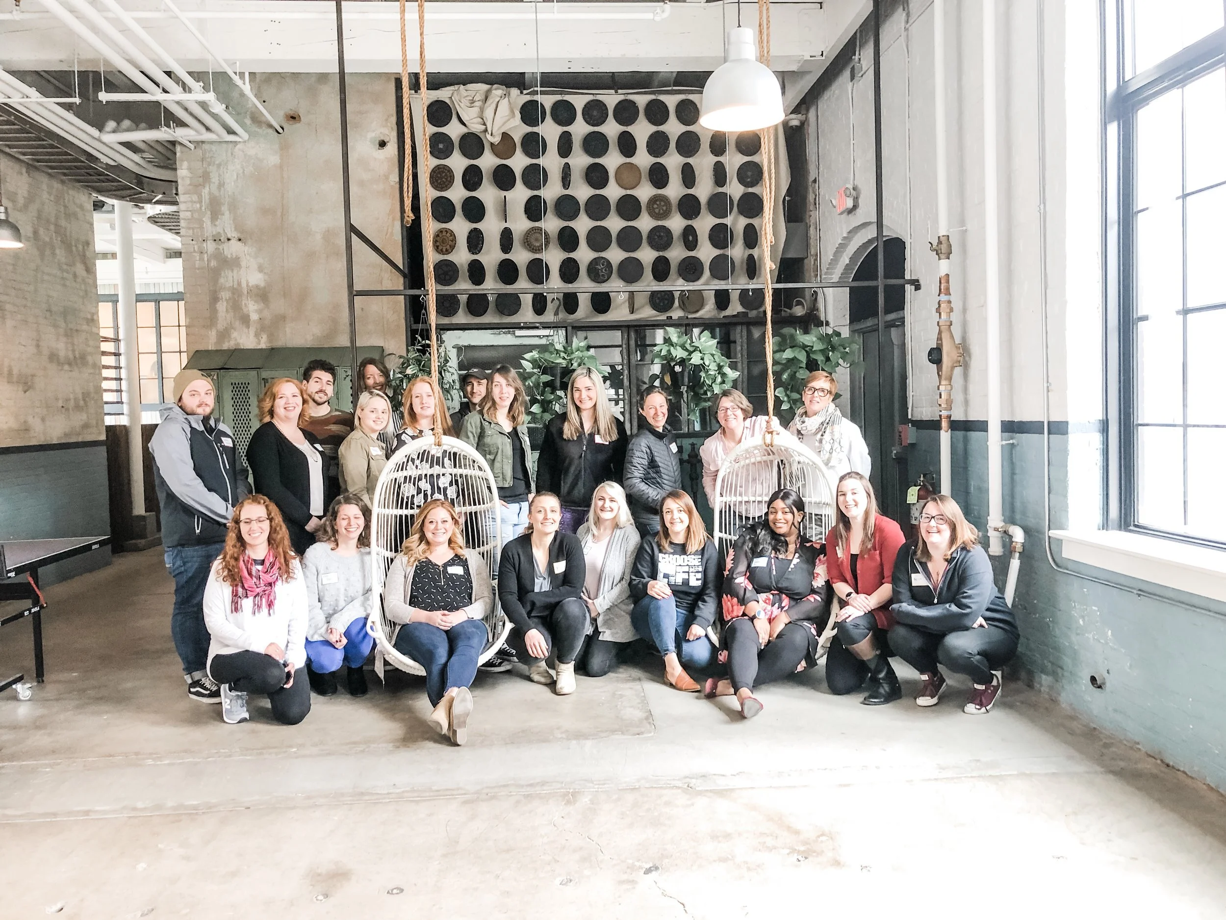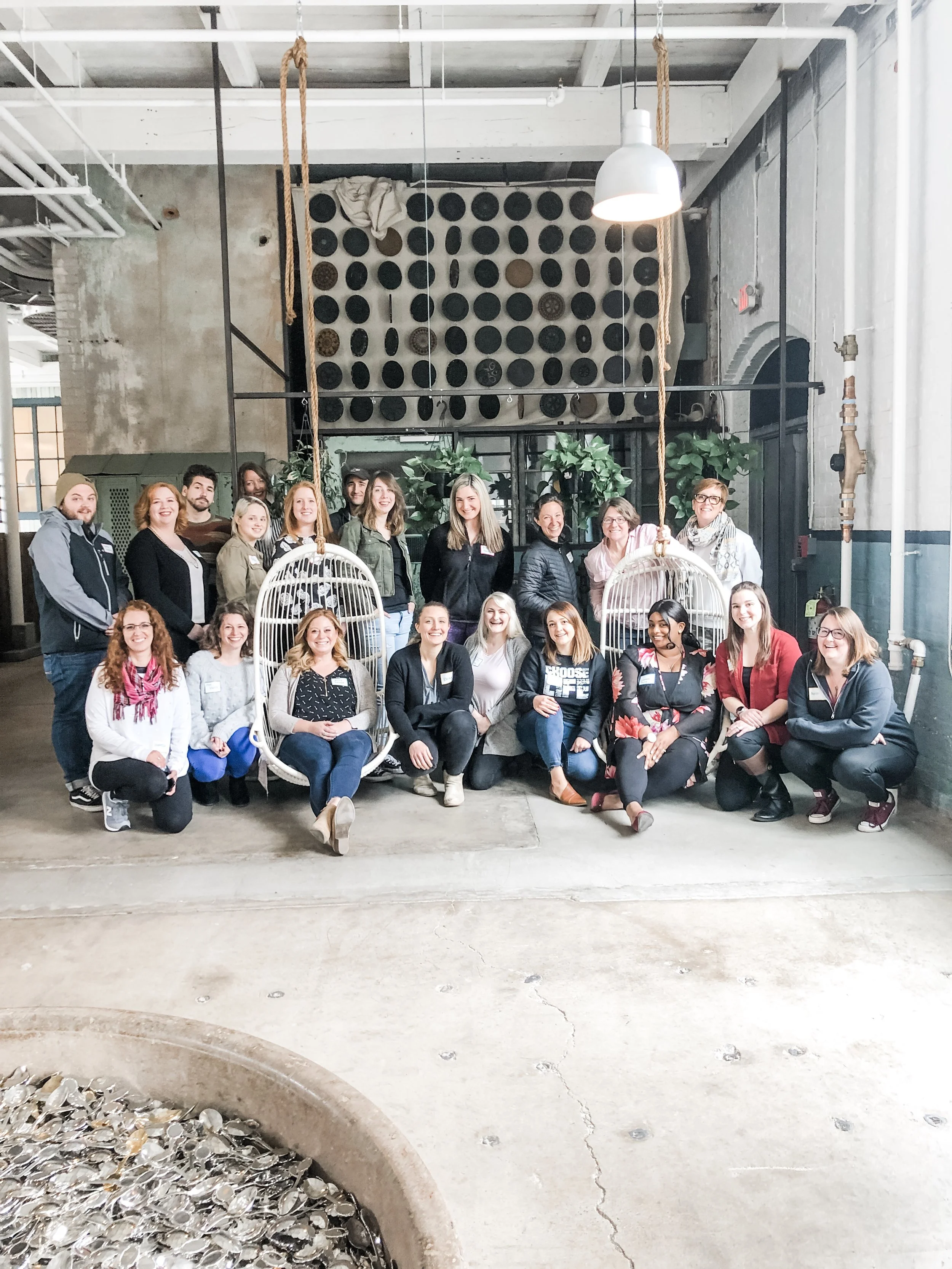 April’s meet up was held at Rooms & Works located in the Armory District of Providence, RI. This industrial space provides business owners with a community style workspace from 14 furnished private office spaces to 10,000 square feet of shared workspace. With free wi-fi, a kitchen area, meeting rooms, and a printer what more could you need? The Rooms & Works building has been a beacon of makers since 1890. It’s full of industrial charm and inviting natural light designed for the next generation of makers to thrive. We were thrilled when Jenny, our event planning chair, secured this location for our April, May and June gatherings.