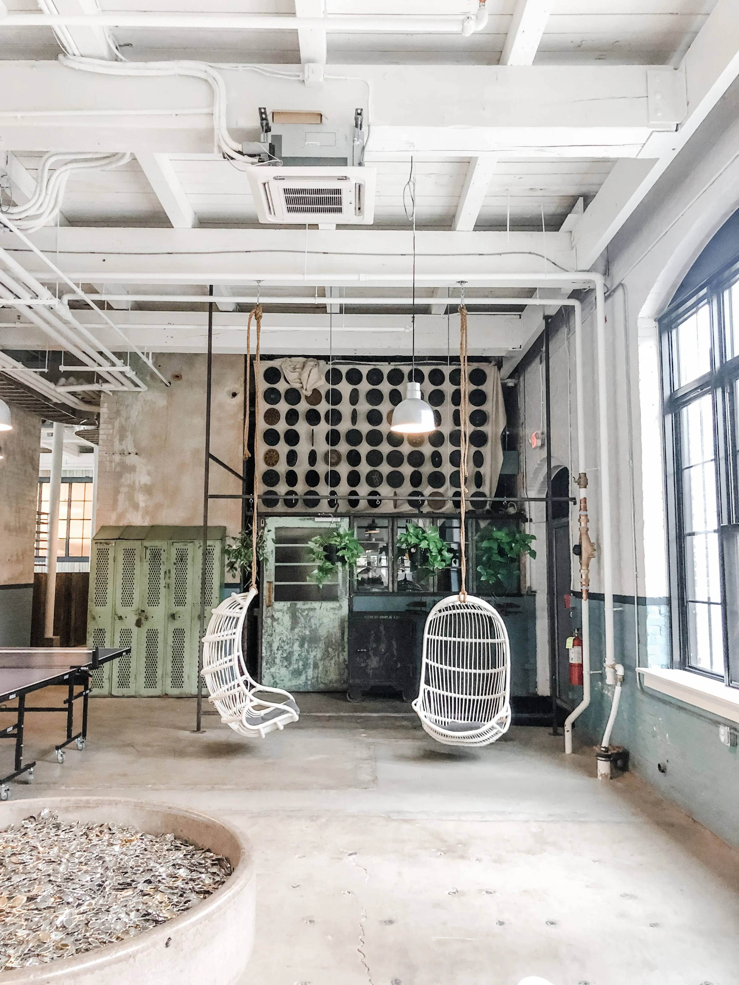 Our girl Lashana Burley, of Jamal & Lashana Photography, loving the hanging chairs at Rooms & Works!