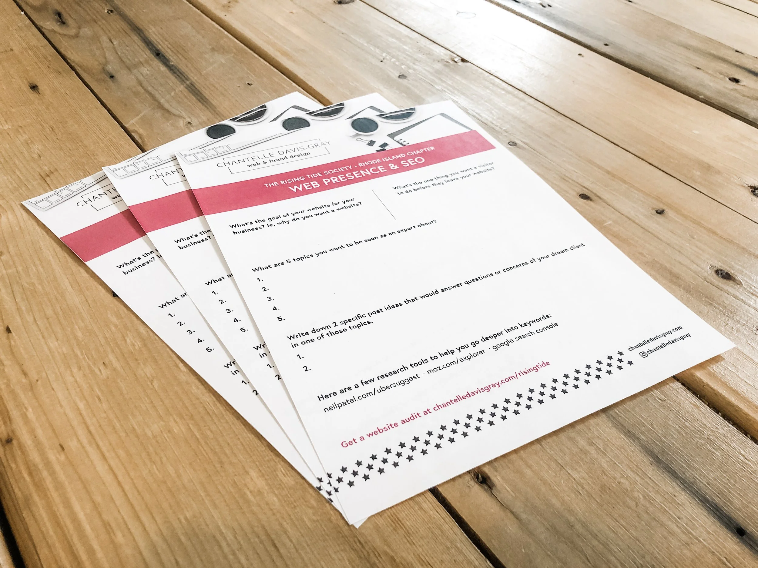 Our topic of the month is all about Web Presence & SEO. How lucky are we to have a member within our community who is our resident expert about this area of business!? Chantelle gifted all of us with a worksheet to get our wheels turning to think about how we can change our SEO game in our own business, while providing an excellent talk packed with nuggets of her personal knowledge in this field. She took a topic that is widely known as a gray area to most business owners and turned it into a facet of our business that can be a feel-good way to grow!
